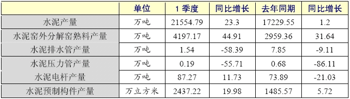 2006年1季度,水泥窯外分解窯熟料產(chǎn)量同比增長速度最快,水泥排水管和水泥壓力管產(chǎn)量比上年同期大幅下降。 1季度,水泥累計生產(chǎn)21554.79萬噸,同比增長23.3%;水泥窯外分解窯熟料生產(chǎn)4197.17萬噸,同比增長44.91%;水泥排水管生產(chǎn)1.54萬噸,同比增長-58.39%;水泥壓力管生產(chǎn)0.19萬噸,同比增長-55.71%;水泥電桿生產(chǎn)87.27萬噸,同比增長11.73%;水泥預(yù)制構(gòu)件生產(chǎn)2437.22萬立方米,同比增長19.98%。