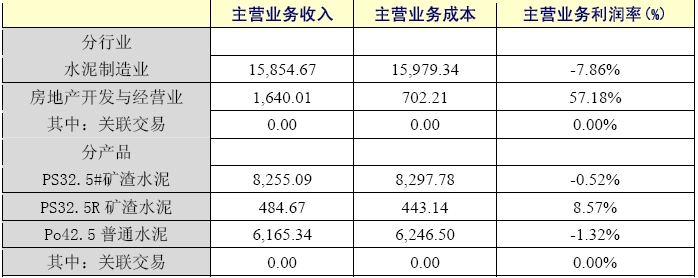 2006年1-9月,天津水泥股份有限公司累計(jì)生產(chǎn)水泥96.7萬(wàn)噸,比上年同期增加16.7萬(wàn)噸,同比增長(zhǎng)20.88%;水泥銷量累計(jì)80.8萬(wàn)噸,比上年同期增加16.5萬(wàn)噸,增長(zhǎng)25.66%;另一項(xiàng)主業(yè)房地產(chǎn)開(kāi)發(fā)收入為1640萬(wàn)元,同比減少1672.8萬(wàn)元,下降50.5%。 由于水泥主業(yè)產(chǎn)銷規(guī)模增長(zhǎng),使三季度的主營(yíng)業(yè)務(wù)收入同比略有增加,1-9月實(shí)現(xiàn)主營(yíng)業(yè)務(wù)收入17494.7萬(wàn)元,比上年同期增加698.7萬(wàn)元,增長(zhǎng)4.16%。其中:水泥產(chǎn)品銷售收入15854.7萬(wàn)元,同比增加2371.7萬(wàn)元,增長(zhǎng)17.59%;房地產(chǎn)開(kāi)發(fā)收入1640萬(wàn)元,同比減少1672.8萬(wàn)元,下降50.5%,主要因新開(kāi)發(fā)項(xiàng)目尚未完全形成銷售所致;1-9月實(shí)現(xiàn)主營(yíng)業(yè)務(wù)利潤(rùn)為813萬(wàn)元,比上年同期減少113萬(wàn)元,下降12.2%,其中:水泥產(chǎn)品銷售利潤(rùn)為虧損125萬(wàn)元,同比增虧78萬(wàn)元,主要是因產(chǎn)品結(jié)構(gòu)調(diào)整導(dǎo)致平均售價(jià)同比下降幅度高于平均成本同比下降幅度。由于公司報(bào)告期內(nèi)主營(yíng)業(yè)務(wù)利潤(rùn)偏低,期間費(fèi)用同比增加,承擔(dān)期間費(fèi)用后的營(yíng)業(yè)利潤(rùn)為虧損2688.4萬(wàn)元,同比增虧726萬(wàn)元;由于報(bào)告期內(nèi)公司取得的補(bǔ)貼收入1468萬(wàn)元,抵補(bǔ)了部分營(yíng)業(yè)利潤(rùn)的虧損,使公司1-9月實(shí)現(xiàn)利潤(rùn)為虧損1188萬(wàn)元,比上年同期增虧438萬(wàn)元,增幅為58.4%;公司1-9月凈利潤(rùn)為虧損1194萬(wàn)元,同比增虧262萬(wàn)元,增幅28.15%。