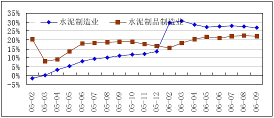 2006 年1-9 月,水泥制品制造業(yè)累計工業(yè)總產(chǎn)值為739.67 億元,同比增長
