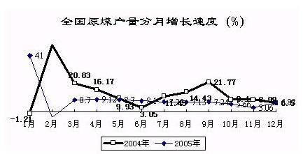 2005年,在國(guó)家宏觀經(jīng)濟(jì)調(diào)控作用下,煤電油運(yùn)供求矛盾有所緩解,但在國(guó)民經(jīng)濟(jì)整體快速增長(zhǎng)的帶動(dòng)下,全國(guó)煤炭工業(yè)繼續(xù)保持平穩(wěn)快速增長(zhǎng)。主要煤炭消費(fèi)行業(yè)增長(zhǎng)速度雖較2004年有所放緩,但生產(chǎn)繼續(xù)保持平穩(wěn)較快增長(zhǎng),推動(dòng)煤炭需求增加。煤炭行業(yè)共同努力,挖掘潛力,保證市場(chǎng)供應(yīng),煤炭產(chǎn)量和銷(xiāo)量雙雙首次突破20億噸大關(guān),創(chuàng)歷史最高水平。