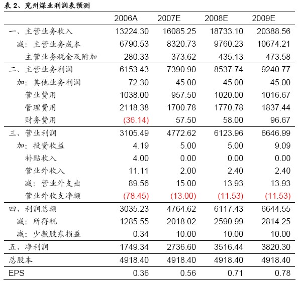 2007 年一季度公司銷售煤炭價格有顯著上漲。公司本部煤炭銷售均價為410.89/噸,同比價格上漲4.3%,比2006 年公司本部炭銷售平均價格為376.40 元/噸也大幅上漲9.16%。我們認為,由于山西征收煤炭一金兩稅造成山西煤炭企業(yè)成本上
