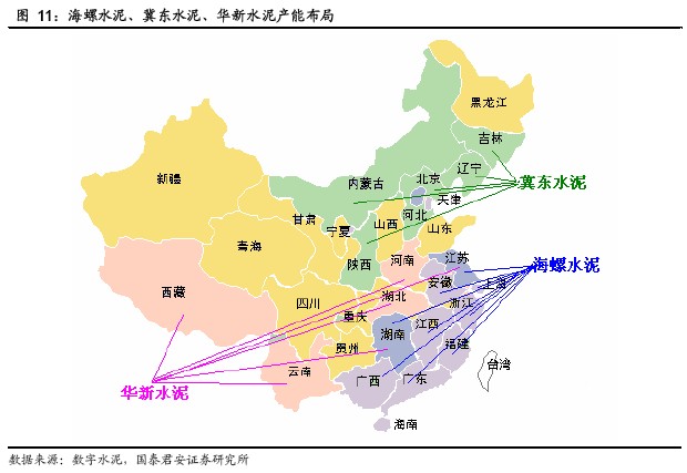 因運(yùn)輸半徑小和儲(chǔ)存時(shí)間短,水泥行業(yè)呈現(xiàn)出更多的區(qū)域性特征,即水泥企業(yè)實(shí)現(xiàn)做大的途徑主要通過異地建立產(chǎn)能來實(shí)現(xiàn),因此區(qū)域的水泥消費(fèi)容量就決定了企業(yè)做大的規(guī)模和成長(zhǎng)性,而區(qū)域淘汰落后產(chǎn)能的比例和數(shù)量也就預(yù)示著新型干法的建設(shè)空間。海螺水泥、冀東水泥和華新水泥經(jīng)營(yíng)區(qū)域具有較高容量和成長(zhǎng)性。