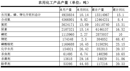 今年一季度,我國化肥總計產(chǎn)量1331.4萬噸,同比增長15.1%。三月份產(chǎn)量492.1萬噸,同比增長10.1%。一季度氨肥同比增長15.3%,其中尿素產(chǎn)量614.6萬噸,同比增長16.5%,三月份尿素 硝酸銨 碳素氫銨市場價個與去年同期持平。