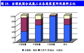 目前,合成氨行業(yè)中以無煙煤或焦炭為原料的企業(yè)約為65%,以天然氣為原料的約占22%,其余部分主要以重油或石腦油為原料。
