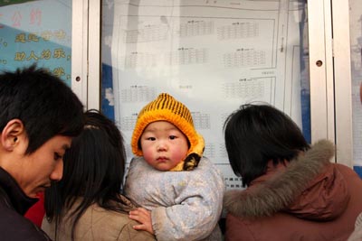 12月16日下午,在安徽淮北臨渙礦工人村集資建房剖面圖前,一名職工家屬抱著小孩認(rèn)真地挑選著適合自已居住的房型。臨渙礦為解決部分無房戶職工的住房困難,在工人村煤氣站大院內(nèi)集資建造住宅樓440套,并由“職工代表聯(lián)席會(huì)”通過了集資建房分配方案,目前,評(píng)分工作已全部結(jié)束,住房分配正在進(jìn)行中。