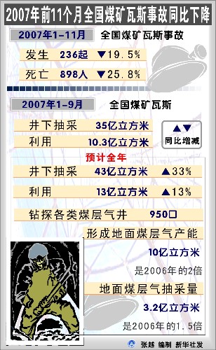 12月24日 圖表:2007年前11個月全國煤礦瓦斯事故同比下降