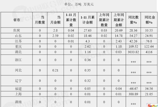 2007年11月份我國焦炭進口分省市數(shù)據(jù)統(tǒng)計