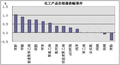 上周化工產(chǎn)品價(jià)格較前一周上漲0.5%