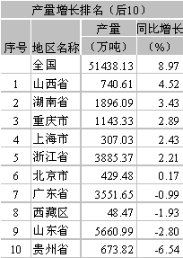 從下表中可以看出:上海及經(jīng)濟(jì)發(fā)達(dá)的水泥大省廣東、山東、浙江水泥產(chǎn)量的增速都大大落后于全國(guó)。而東北的遼寧、黑龍江;西北的寧夏、新疆;廣西、湖南、內(nèi)蒙古、江蘇、江西的產(chǎn)量在快速增長(zhǎng)。