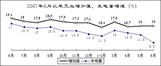 發(fā)電量增速減緩,效益明顯下降。上半年,全國發(fā)電量16803億千瓦時(shí),同比增長12.9%,增速同比減緩3.1個(gè)百分點(diǎn);其中,火電、水電分別增長11.7%和18.5%。區(qū)域性、季節(jié)性電力緊張?zhí)卣鞲用黠@。今年以來,先后有20個(gè)省級(jí)電網(wǎng)出現(xiàn)拉限電;入夏以來,南方電網(wǎng)供電持續(xù)緊張,河北南網(wǎng)、山西、遼寧、河南、重慶等地出現(xiàn)拉限電。預(yù)計(jì)夏季高峰期全國最大電力缺口1000萬千瓦左右。前五個(gè)月,由于煤價(jià)上漲較多和因?yàn)?zāi)損失較重,電力行業(yè)實(shí)現(xiàn)利潤173億元,下降70.8%,去年同期為增長57.6%。其中,火電行業(yè)由去年同期凈盈利269億元轉(zhuǎn)為凈虧損22.9億元;水電、供電行業(yè)利潤分別下降22.9%和52.6%,去年同期為增長5.8%和86.3%。