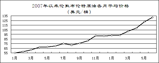 國際原油價(jià)格屢創(chuàng)歷史新高。紐約WTI原油價(jià)格先后突破110美元/桶、120美元/桶、130美元/桶、140美元/桶。6月份,布倫特原油平均價(jià)格132美元/桶,同比提高61.9美元/桶,漲幅為88.2%。由于成品油價(jià)格倒掛,煉油企業(yè)虧損嚴(yán)重,地方煉廠停產(chǎn)、減產(chǎn)面擴(kuò)大,部分地區(qū)成品油市場供應(yīng)較為緊張。為此,國家自6月20日起將汽油、柴油價(jià)格每噸提高1000元。前五個(gè)月,石化行業(yè)實(shí)現(xiàn)利潤2237億元,同比下降0.4%,去年同期為增長27.1%。其中,煉油行業(yè)由去年同期凈盈利310億元轉(zhuǎn)為凈虧損568億元。