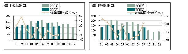 我國的水泥生產(chǎn)絕大部分在國內(nèi)消費,9月份的水泥的出口量僅為113.03萬噸,環(huán)比增長5.89%,同比增長率較8月份提升近4個百分點,為-20.97%;離岸價為46.85美元/噸,同比增長19.42%。
