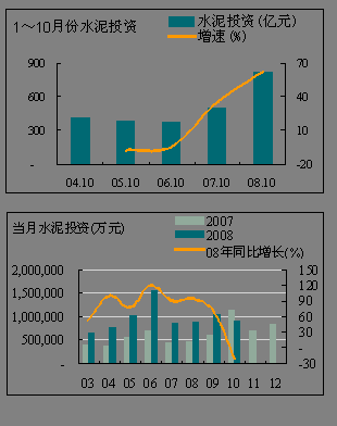 1~10月份水泥累積投資完成額為水泥投資累計完成額為8,164,965萬元,同比增長62.89%,較前兩年同期有大幅增加。