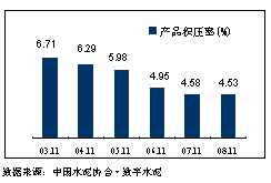 1~11月的全國的水泥產(chǎn)品積壓率延續(xù)近幾年連續(xù)下降趨勢,為4.53%,是自03年以來的最好水平。今年在市場需求減緩的情況下,很多地區(qū)主動(dòng)采取限產(chǎn)保價(jià)措施,是產(chǎn)品積壓率持續(xù)走低的最主要原因。