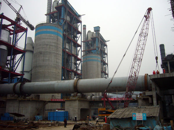 繼2008年12月5日四川峨勝水泥股份有限公司二期5000t/d新型水泥干法生產(chǎn)線順利點火投產(chǎn)后,蘇州中材第37項目部所有人員未曾休息一天就投入了緊張的三期5000t/d水泥生產(chǎn)線的施工建設(shè)。項目部精心組織,僅用短短37天,三期回轉(zhuǎn)窯就順利完成了合龍 。同時,該線窯尾預(yù)熱器及鋼結(jié)構(gòu)框架已經(jīng)安裝到第三層,工期之短,進度之快,得到了業(yè)主對蘇州中材的充分肯定和高度贊揚。
