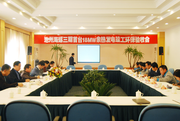 2009年2月12日,安徽省環(huán)境保護(hù)局在池州海螺專家公寓二樓會(huì)議室主持召開池州海螺三期首臺(tái)18000KW純低溫余熱發(fā)電項(xiàng)目竣工環(huán)保驗(yàn)收會(huì)。會(huì)議由省環(huán)保局環(huán)評(píng)處副處長項(xiàng)磊主持,省環(huán)境保護(hù)監(jiān)測中心站、省科技咨詢中心、市環(huán)保局、市環(huán)境監(jiān)察支隊(duì)、市環(huán)境保護(hù)監(jiān)測站及設(shè)計(jì)、施工單位有關(guān)專家和代表共十八人參加會(huì)議,池州海螺公司生產(chǎn)品質(zhì)處、余熱發(fā)電處、辦公室參加了驗(yàn)收會(huì)。公司領(lǐng)導(dǎo)劉小平、唐宗文代表池州海螺公司熱烈歡迎專家組一行。
