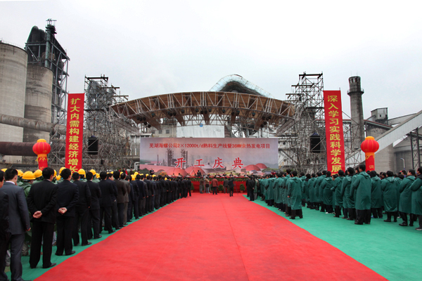2009年2月27日,由安徽海螺集團公司投資興建的蕪湖海螺公司三期兩條日產(chǎn)12000噸熟料生產(chǎn)線及配套的36兆瓦余熱發(fā)電項目正式破土動工。該項目建成投產(chǎn)后,蕪湖海螺公司熟料總產(chǎn)能將突破1500萬噸,余熱發(fā)電能力將增加到6億度,成為當今世界最大的水泥熟料生產(chǎn)基地。同時,對加速安徽省水泥工業(yè)結(jié)構(gòu)調(diào)整、推進節(jié)能減排、增加社會就業(yè)、繁榮地方經(jīng)濟,將會發(fā)揮重要作用。
