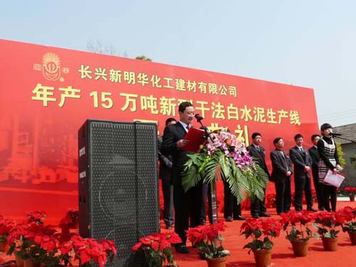 2009年3月26日,國產(chǎn)首條年產(chǎn)15萬噸白水泥熟料新型干法水泥生產(chǎn)線在浙江長興新明華化工建材有限公司舉行開工典禮,有關(guān)領(lǐng)導(dǎo)及嘉賓200余人參加了開工典禮。