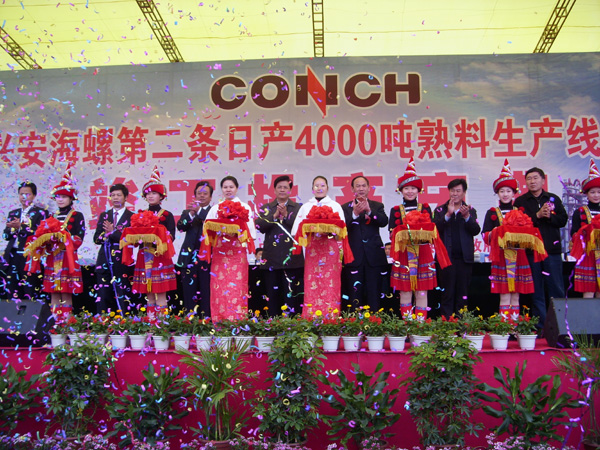 桂林市市長(zhǎng)李志剛、市委副書(shū)記束華、市人大副主任熊顯元、市政協(xié)副主席王大平、興安縣委書(shū)記粟定成、縣長(zhǎng)王建毅,海螺集團(tuán)公司副總經(jīng)理余彪、海螺水泥股份公司副總經(jīng)理汪鵬飛等領(lǐng)導(dǎo)共同出席了點(diǎn)火儀式,桂林市、興安縣四大班子及相關(guān)部門(mén)領(lǐng)導(dǎo),施工、安裝、監(jiān)理單位領(lǐng)導(dǎo),廣西區(qū)域扶綏、興業(yè)、北流、湛江海螺公司領(lǐng)導(dǎo)及員工代表共500多百人參加了點(diǎn)火儀式。