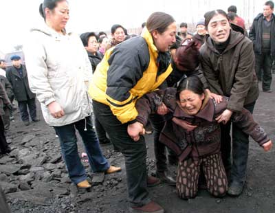 傷心欲絕的礦工家屬