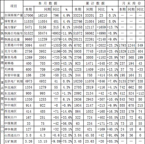 當(dāng)前位置:首頁 -> 行業(yè)統(tǒng)計(jì)數(shù)據(jù) -> 重點(diǎn)礦統(tǒng)計(jì) -> 煤炭運(yùn)銷
