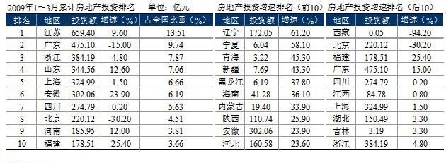由于房地產(chǎn)業(yè)對(duì)水泥的用量較大,故房地產(chǎn)業(yè)的增速對(duì)水泥行業(yè)的需求影響相對(duì)其他產(chǎn)業(yè)較大。在1~3月份房地產(chǎn)投資額排名前10的地區(qū)中,有6個(gè)地區(qū)的增速列入排名后10的行列,其中北京、福建、廣東增速均為負(fù)值;只有安徽省增速進(jìn)入排名前10,排第9位。