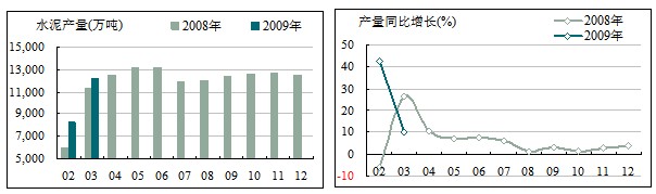 分區(qū)域來(lái)看,1~3月份西南、西北及東北(除吉林外)水泥市場(chǎng)運(yùn)行良好,在需求拉動(dòng)下水泥產(chǎn)量快速增長(zhǎng);而長(zhǎng)三角、珠三角及環(huán)渤海三大經(jīng)濟(jì)區(qū)的水泥需求表現(xiàn)疲弱,受固定資產(chǎn)投資及房地產(chǎn)影響較大。