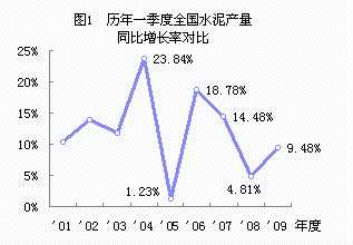 今年一季度全國(guó)水泥產(chǎn)量2. 8億噸,比去年同期增長(zhǎng)9.5%。去年年初南方冰凍雨雪災(zāi)害損失水泥產(chǎn)量1100多萬噸,今年在此基礎(chǔ)上的水泥產(chǎn)量增長(zhǎng)率,在2000年以后仍屬較低水平(見圖1)。預(yù)計(jì)今年上半年全國(guó)水泥產(chǎn)量6.8億噸,比去年上半年增長(zhǎng)4.6%。