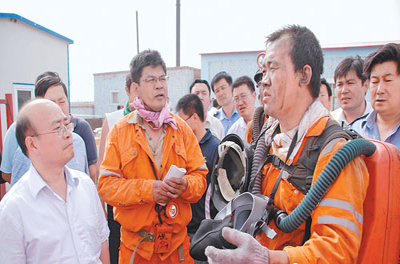 6月30日,救援人員正在向地面指揮人員匯報井下情況