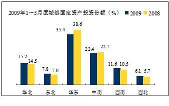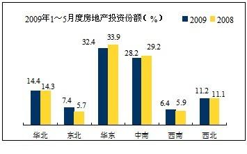 從各地區(qū)房地產(chǎn)投資份額情況來(lái)看,增長(zhǎng)較高的是東北地區(qū)從5.7%提高7.4%,華北、西南、西北略有增長(zhǎng),華東、中南與去年同期相比各下降1個(gè)百分點(diǎn)。