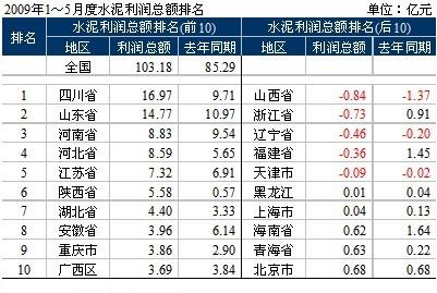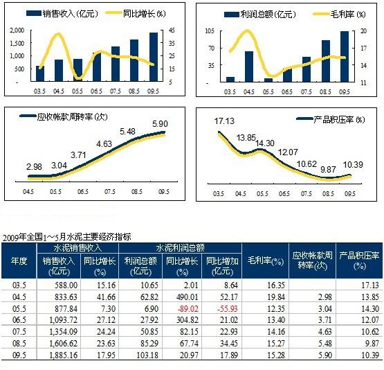 1~5月水泥工業(yè)的總體運(yùn)行情況是:在產(chǎn)量大幅提升的背景下,經(jīng)濟(jì)指標(biāo)繼續(xù)向好,銷(xiāo)售收入、利潤(rùn)總額同比增長(zhǎng),銷(xiāo)售利潤(rùn)率,應(yīng)收賬款周轉(zhuǎn)率上升,產(chǎn)品積壓率微升的良好局面。但區(qū)域分化明顯,主要的利潤(rùn)增長(zhǎng)點(diǎn)在西部地區(qū),而且區(qū)域利潤(rùn)水平表現(xiàn)平平。