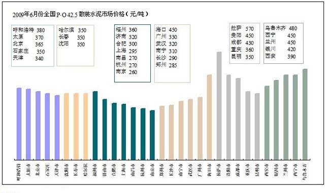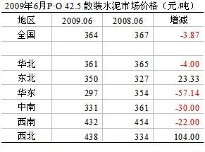 從數(shù)字水泥網(wǎng)1~6月全國(guó)平均價(jià)格跟蹤中可以明顯看到,全國(guó)P?O 42.5噸水泥價(jià)格364元,略低于去年同期水平,西北和西南地區(qū)在400元/噸以上,高出全國(guó)平均水平70元/噸。尤其是西北地區(qū)同比高出104元/噸,可見(jiàn)利潤(rùn)之豐厚。但西南地區(qū)的價(jià)格同比已下降22元/噸,這不僅是近兩個(gè)月四川帶頭阻擊外埠水泥入川下調(diào)價(jià)格所致,也是市場(chǎng)供需狀態(tài)的一個(gè)反映。