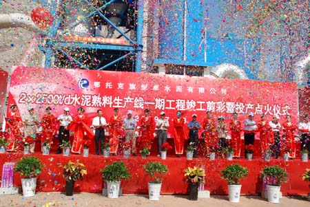 7月18日,內(nèi)蒙古鄂爾多斯市棋盤井鎮(zhèn)鑫宇集團(tuán)恒卓水泥公司建設(shè)工期近一年的兩條日產(chǎn)2500噸新型干法熟料水泥生產(chǎn)線一期工程在此成功進(jìn)行點(diǎn)火投產(chǎn)儀式。