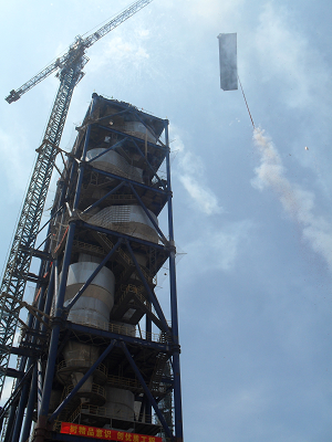 窯尾框架的順利封頂,極大地鼓舞了邯鄲中材員工的士氣,同時也吹響了安裝高峰的號角。