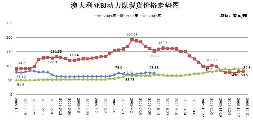 澳大利亞BJ動(dòng)力煤現(xiàn)貨價(jià)格走勢(shì)