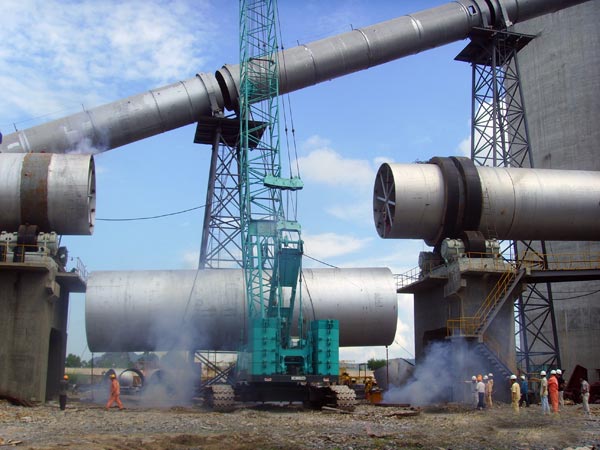 施工過程中,盡管面臨高溫作業(yè)、雨季施工等眾多施工難點(diǎn),項(xiàng)目部始終把保安全、抓質(zhì)量、搶進(jìn)度作為工作的重點(diǎn)。在回轉(zhuǎn)窯吊裝之前,對(duì)吊裝方案反復(fù)論證,制定出較完善的吊裝方案和安全保障體系以確保施工安全。歷時(shí)3天半,實(shí)現(xiàn)了回轉(zhuǎn)窯的順利合龍,贏得了業(yè)主的高度贊揚(yáng)。