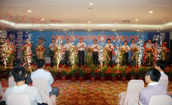 項目竣工投產(chǎn)典禮于上午10:38分準時在萬州區(qū)國際大酒店舉行,科華集團董事長趙寶忠首先代表集團董事會和全體科華員工,向長期以來一直關心、支持科華發(fā)展的萬州區(qū)委、區(qū)人大、區(qū)政府、區(qū)政協(xié)和各有關部門表示感謝,并向所有參與項目建設的人員以及多年來與科華合作的供應商、經(jīng)銷商、新老客戶等表示謝意。他說,萬州科華二期項目的投資興建,建立在一期項目良好發(fā)展的基礎上,萬州區(qū)委、區(qū)政府等營造的“替投資者著想、幫投資者成功、助投資者發(fā)展、為投資者服務”的良好投資經(jīng)營環(huán)境,使萬州科華一期項目取得了不凡的發(fā)展業(yè)績:一期工程從2005年8月份水泥投放市場以來,共累計生產(chǎn)、銷售水泥355萬噸,實現(xiàn)利潤2億多元,上繳稅收1.1億元,除享受優(yōu)惠政策外,凈上繳入庫增值稅及企業(yè)所得稅3580萬元,地方稅費1290萬元,并積極參與社會公益活動,踐行企業(yè)的社會責任。趙寶忠董事長指出,萬州科華二期項目總投資4.7億元,日產(chǎn)5000噸的水泥生產(chǎn)線采用先進的干法生產(chǎn)工藝,自動化程度高,并在環(huán)境美化、生態(tài)保護、資源綜合利用和循環(huán)經(jīng)濟等方面都有充分的考慮和精心的設計。項目的投產(chǎn),將直接提供就業(yè)崗位800余個,間接帶動采礦業(yè)、運輸業(yè)、維修及第三產(chǎn)業(yè)等2000余人受益,將為萬州區(qū)乃至重慶市水泥工業(yè)結構調(diào)整起到積極的示范作用,為萬州工業(yè)強區(qū)和打造“500億萬州”的發(fā)展戰(zhàn)略,拉動區(qū)域經(jīng)濟發(fā)展,添磚加瓦。