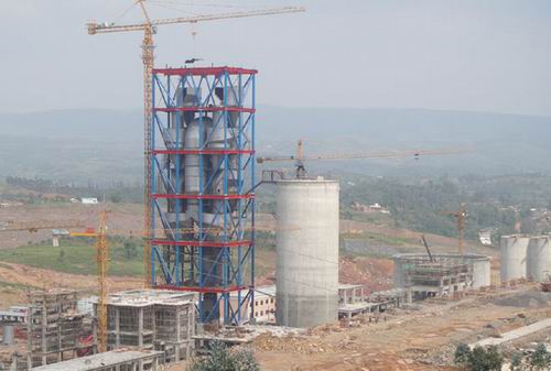8月30日下午3時18分,伴隨著陣陣鞭炮聲,大型吊機(jī)將一塊塊花紋鋼板吊上高空,穩(wěn)穩(wěn)地落在窯尾框架最頂端,宜良紅獅一期5000t/d生產(chǎn)線窯尾框架順利封頂。