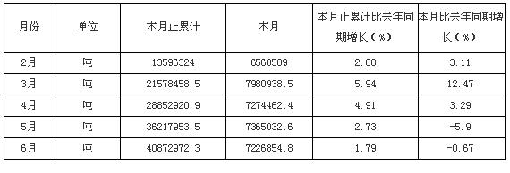 2009年1-6月河北原煤產(chǎn)量統(tǒng)計(jì)