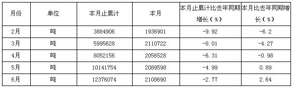 2009年1-6月江蘇原煤產(chǎn)量統(tǒng)計