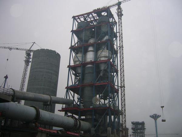 五期工程窯尾框架吊裝的塔吊是租賃的一臺(tái)舊塔吊,自從7月4日開始投入使用就故障頻繁,項(xiàng)目部克服因塔吊故障造成的影響、克服四川多雨天氣的影響、克服甲方供貨不及時(shí)等多方面的困難,精心組織施工。為在國(guó)慶前完成封頂任務(wù),向祖國(guó)母親的60華誕獻(xiàn)禮,峨勝項(xiàng)目部全體員工爭(zhēng)分奪秒,在注重進(jìn)度的同時(shí)也狠抓安全和質(zhì)量,短短的77天有效工期內(nèi)就完成了這一艱巨任務(wù)。