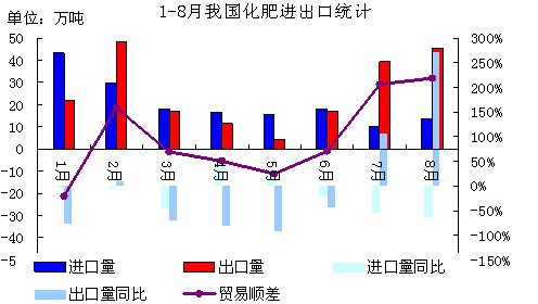 | 1-8月我國化肥進(jìn)出口統(tǒng)計 | ||||