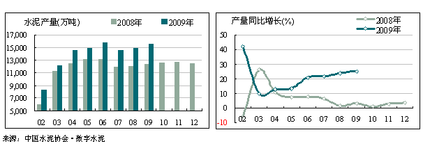 ——1~9月,累計(jì)水泥產(chǎn)量11.8億噸,同比增長(zhǎng)達(dá)18.22%,其中9月份當(dāng)月水泥產(chǎn)量為15,630 萬(wàn)噸,是2009年至今為止最高的單月產(chǎn)量。