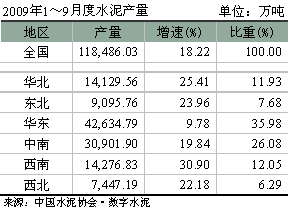 分地區(qū)來(lái)看,1~9 月份西南地區(qū)的累計(jì)增速居全國(guó)六大區(qū)首位,是唯一增速超過(guò)30%的地區(qū),其中主要的拉動(dòng)力量仍是四川省:水泥產(chǎn)量達(dá)6,320.30萬(wàn)噸,同比增長(zhǎng)42.22%。