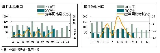 9月份水泥出口較8月份繼續(xù)有所回升,為81.66萬(wàn)噸,但仍未擺脫同比增長(zhǎng)的趨勢(shì),同比下降了27.75%;累計(jì)水泥出口量達(dá)614萬(wàn)噸,同比下跌了42.11%。但出口價(jià)格繼續(xù)維持在50元/噸。