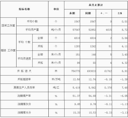 2009年1-6月國有重點煤礦企業(yè)主要生產(chǎn)指標