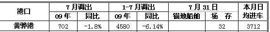 黃驊港1-7月份煤炭調(diào)出統(tǒng)計