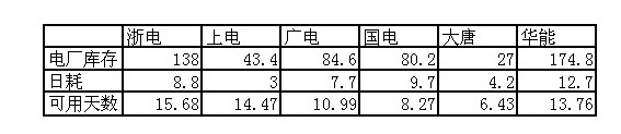 2009年11月13日直供電廠煤炭庫存統(tǒng)計