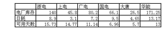 2009年11月16日直供電廠煤炭庫存統(tǒng)計(jì)