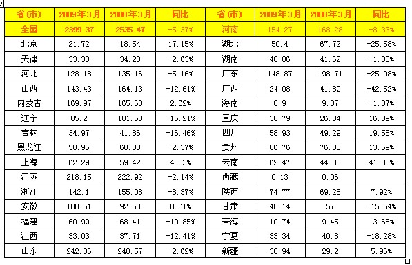 2009年3月全國火電發(fā)電量統(tǒng)計